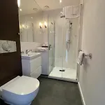 A balcony and a dining place include comforts like ironing facilities, along with a television. The apartment is also furnished with a work desk. A bathroom has a walk-in shower, a separate toilet, and a sink, as well as a hair dryer and bath sheets.